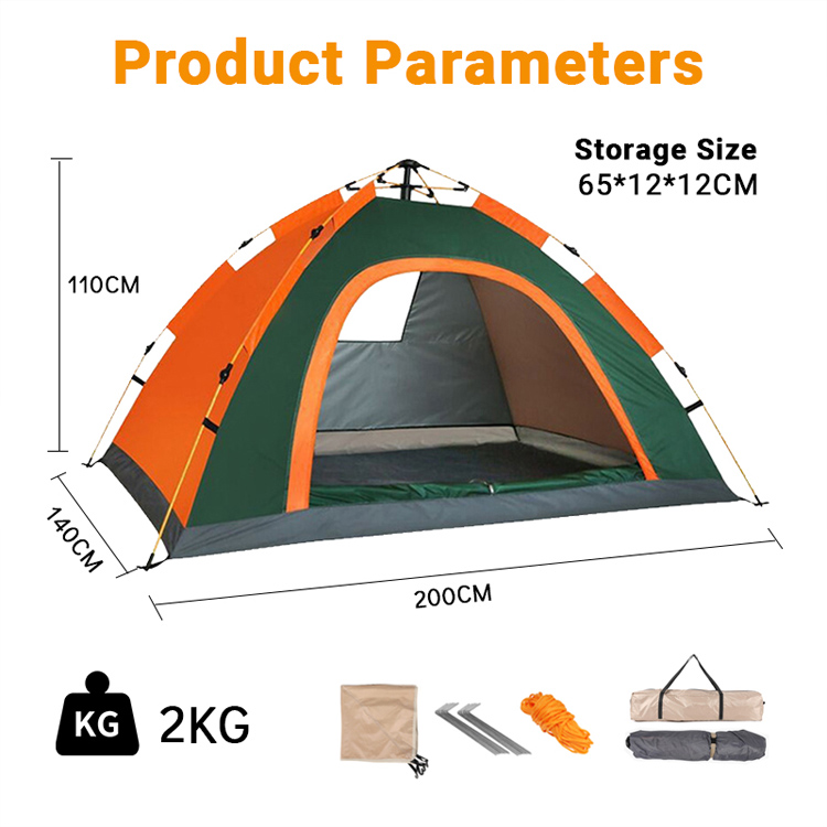 Dwuwarstwowy automatyczny namiot 210D Oxford, wodoodporny, odporny na deszcz. Twoje najlepsze schronienie na każdą pogodę na przygody na świeżym powietrzu. Ten dwuwarstwowy namiot 210D Oxford charakteryzuje się automatyczną konfiguracją i doskonałą ochroną przed deszczem. Dzięki lekkim kijom z włókna szklanego i łatwej w noszeniu konstrukcji idealnie nadaje się na biwaki i wyjścia z grillem.