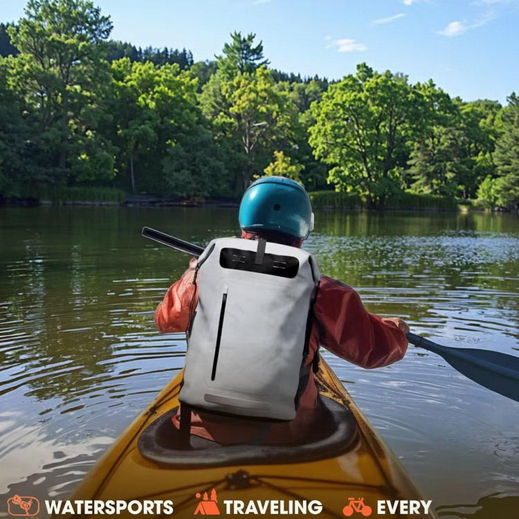 Idealny do uprawiania turystyki pieszej, kajakarstwa, wycieczek na plażę, podróży monsunowych i sportów wodnych. W 100% wodoodporna konstrukcja i trwałe zgrzewane szwy wytrzymują nieostrożne użytkowanie w wymagających warunkach.