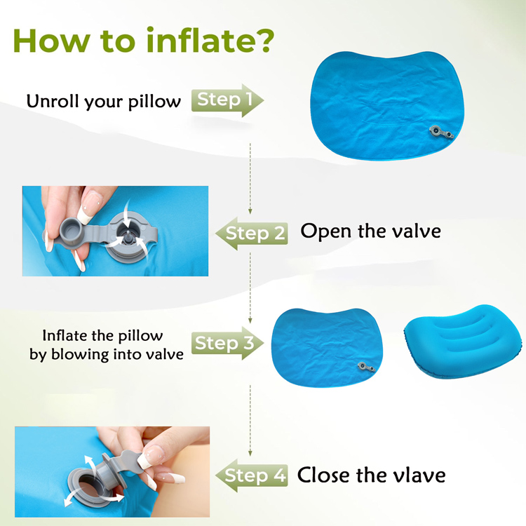 Ergonomiczna, nadmuchiwana, ściśliwa poduszka kempingowa z TPU. Twoje najlepsze przenośne rozwiązanie do spania podczas przygód na świeżym powietrzu. Ta ergonomiczna poduszka kempingowa ma zaawansowaną konstrukcję TPU zapewniającą najwyższy komfort i trwałość. Jego ultralekka, ściśliwa konstrukcja zapewnia minimalny rozmiar po spakowaniu, dzięki czemu idealnie nadaje się do pieszych wędrówek, wędrówek z plecakiem i podróży.