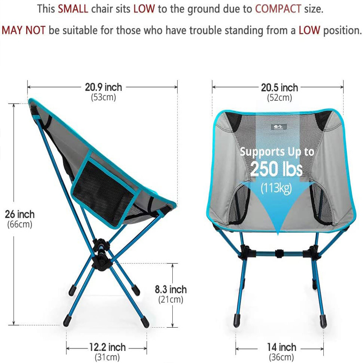 Ultralekkie, przenośne, kompaktowe, składane krzesło kempingowe. Ciesz się komfortem w dowolnym miejscu dzięki temu niezwykle lekkiemu, przenośnemu krzesłu składanemu. Kompaktowy i łatwy do przenoszenia dzięki poręcznej torbie do przechowywania’Idealny na wycieczki na plażę, biwakowanie, wędrówki z plecakiem, wędrówki lub każdą przygodę na świeżym powietrzu, gdzie komfort spotyka się z wygodą.