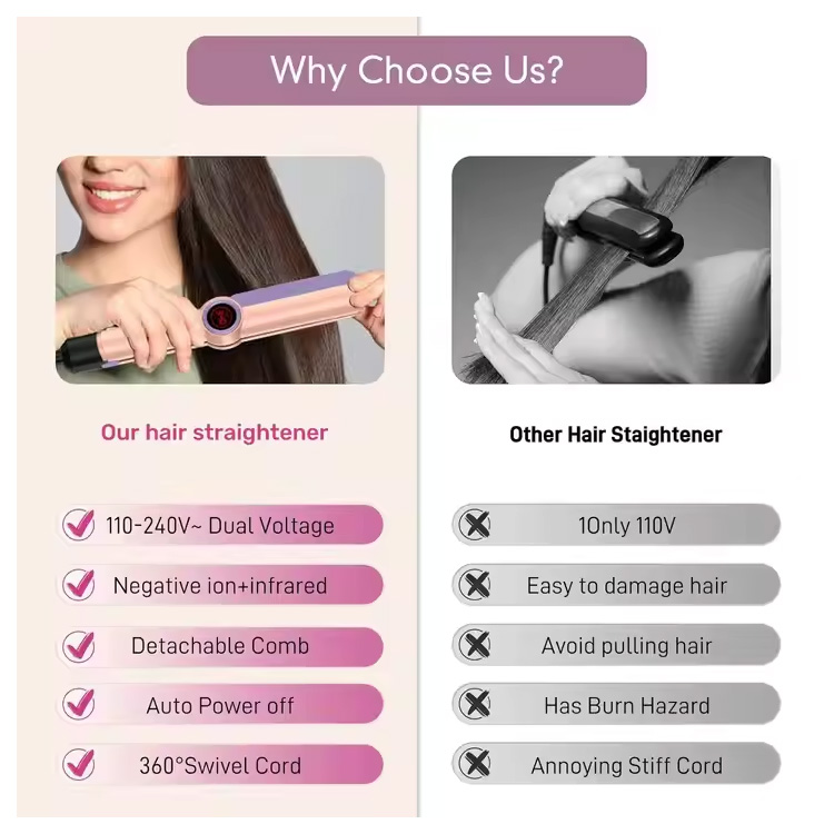 Jako profesjonalny dostawca produktów produkcyjnych, chcielibyśmy dostarczyć Państwu BEST-HOME. Wysokowydajna prostownica do włosów z szerokimi płytkami i żelazkiem. Produkt jest od dawna eksportowany do Europy, Ameryki Północnej i obszarów Środkowego Wschodu. Jako fabryka możemy zapewnić dokładny czas dostawy i najlepszą obsługę posprzedażną, a jakość naszych produktów jest doceniana przez klientów na całym świecie.