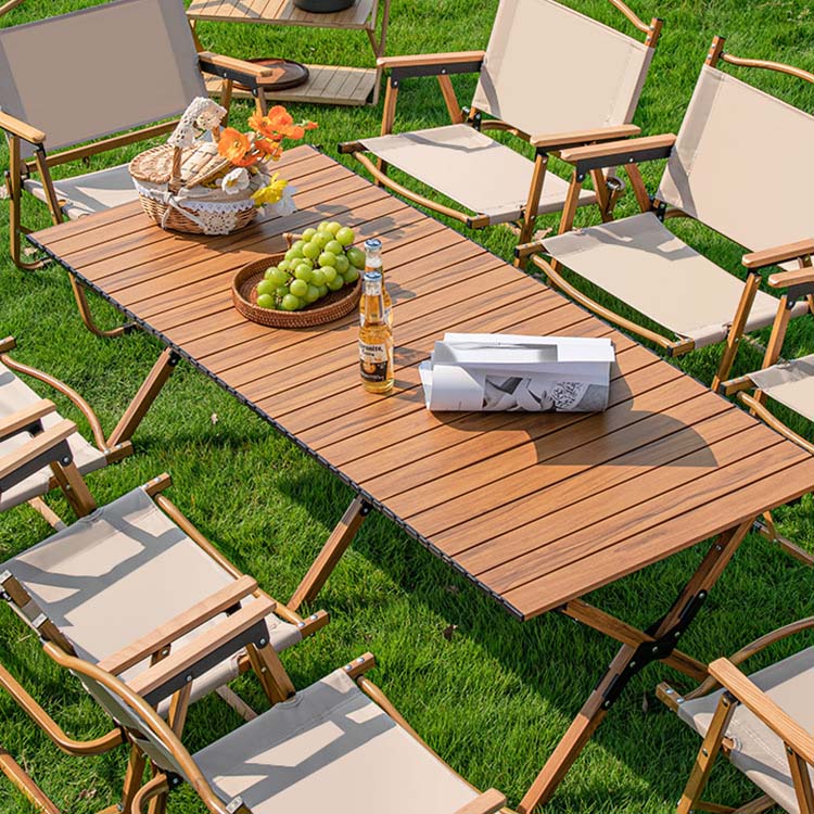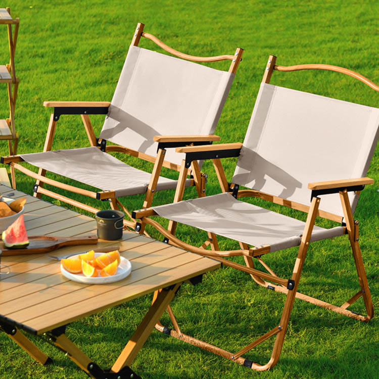 Wysokiej jakości, lekkie, składane krzesło kempingowe ze stali nierdzewnej. Twoje najwyższej jakości rozwiązanie do siedzenia na zewnątrz. To wysokiej jakości krzesło kempingowe łączy w sobie lekką ramę ze stali nierdzewnej z poręczami z litego drewna, co zapewnia najwyższy komfort. Idealny na wycieczki na plażę i relaks w ogrodzie, oferuje zarówno trwałość, jak i elegancką przenośność.