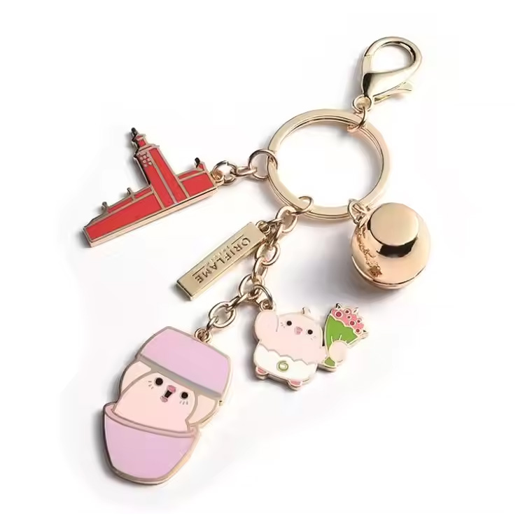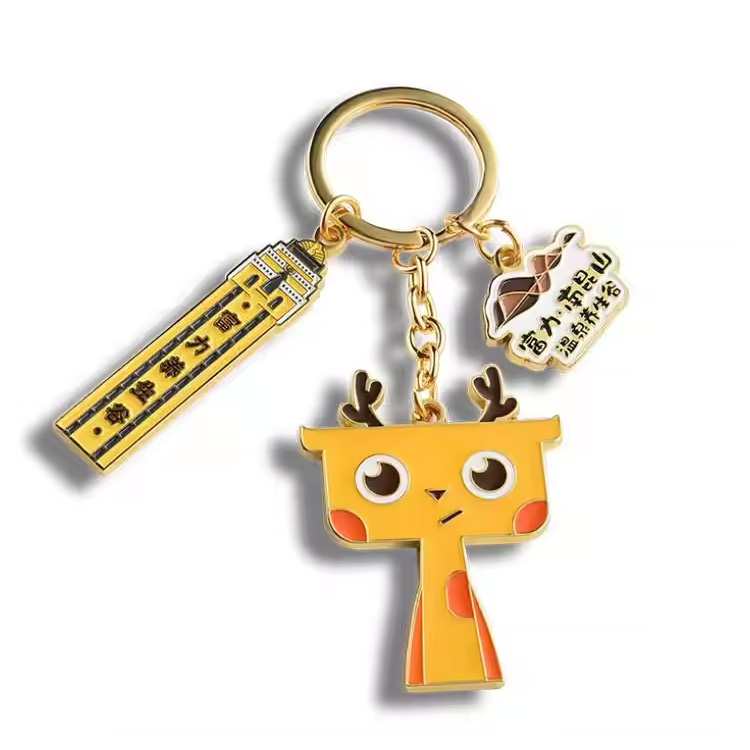 Wysokiej jakości hurtownia niestandardowe logo metalowe złote brechy. Przyroda urocza metalowa brelok do kreskówek ze złotym wykończeniem, spersonalizowany projekt logo, wysokiej jakości materiał ze stopu cynku, idealny do prezentów promocyjnych, pamiątek lub merchandisingu marki. Trwałe i stylowe akcesorium, aby zaprezentować swoją unikalną tożsamość marki.