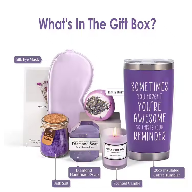 Każde pudełko upominkowe Lunaire zawiera pięknie skoordynowany wybór przedmiotów, takich jak kubek ze stali nierdzewnej, świeca aromaterapeutyczna, mydło w kształcie rombu, suszone kwiaty i kartki z życzeniami. Ten gotowy do podarowania zestaw pozwala zaoszczędzić czas, zapewniając jednocześnie pełne, serdeczne przeżycie na każdą okazję.