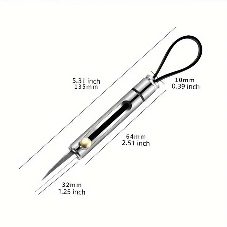 Mierząc zaledwie 2,5 cala i ważąc zaledwie 0,8 uncji, to narzędzie można łatwo przymocować do breloczka do kluczy lub plecaka, dzięki czemu zawsze masz pod ręką narzędzie do cięcia.