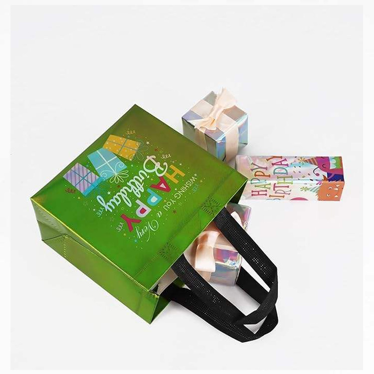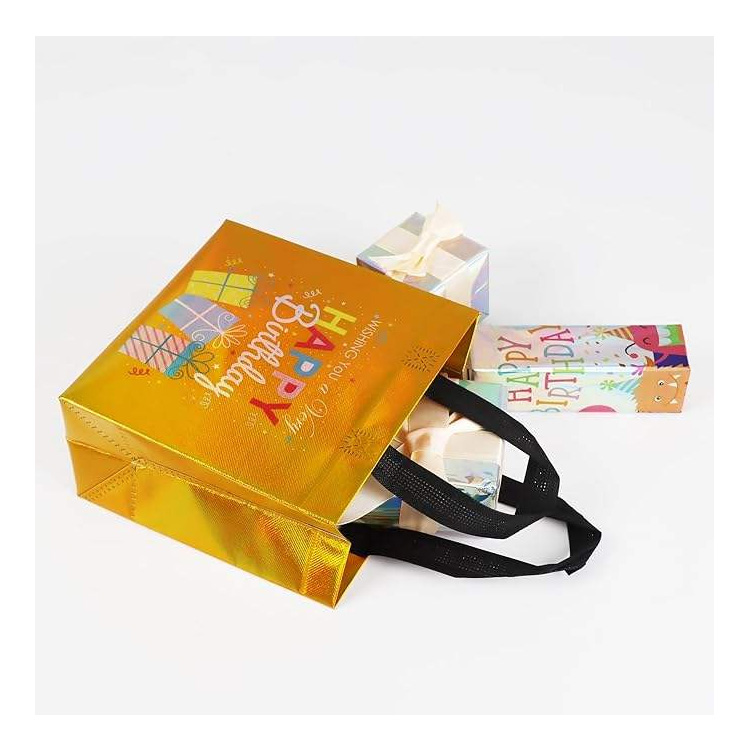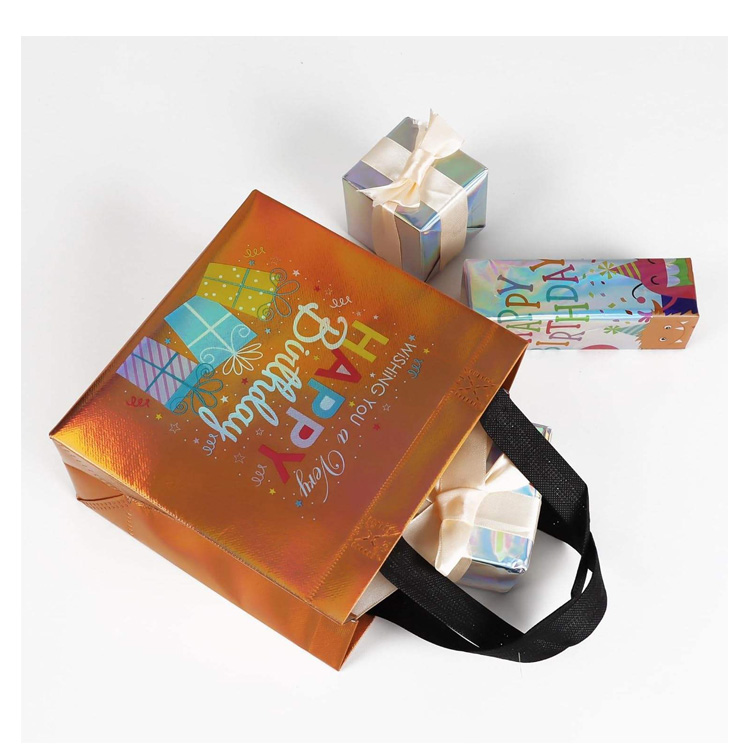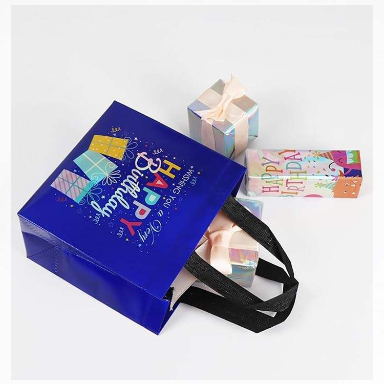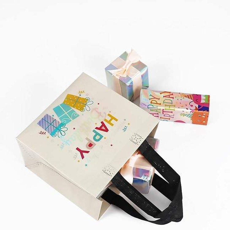 Torby urodzinowe z włókniny w wielu rozmiarach. Wielowymiarowe torby urodzinowe z włókniny w różnych rozmiarach charakteryzują się żywymi wzorami, solidnymi uchwytami i pasującymi zawieszkami, idealnie nadają się na upominki na przyjęcia, prezenty i dekoracje, dodając świątecznego akcentu każdej uroczystości, oferując jednocześnie praktyczne, wielokrotnego użytku i przyjazne dla środowiska rozwiązanie opakowaniowe.