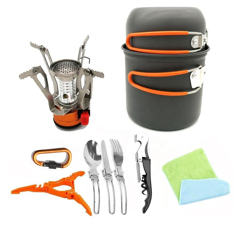 Przenośny zestaw naczyń kuchennych na zewnątrz, na wędrówki z plecakiem