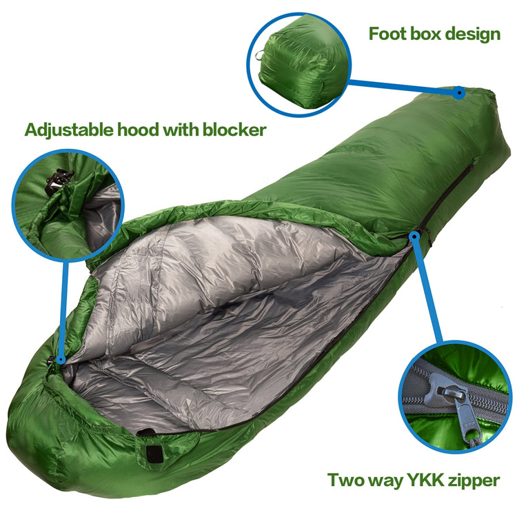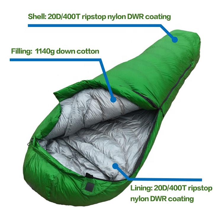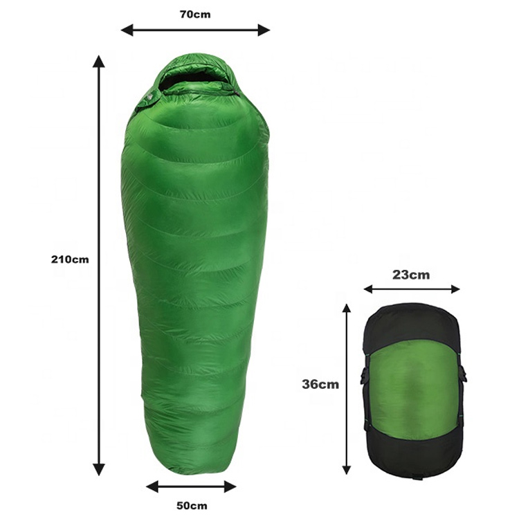 Ultralekki, przenośny śpiwór mumii na zewnątrz w zimne dni. Twoje najlepsze rozwiązanie do spania w zimne dni na przygody w dzikiej przyrodzie. Ten ultralekki śpiwór dla mamy wyposażony jest w wysokiej jakości izolację z kaczego puchu gęsiego, zapewniającą maksymalne ciepło. Zaprojektowany z myślą o poważnych kempingach, łączy w sobie wyjątkową wydajność cieplną z minimalną wagą opakowania.