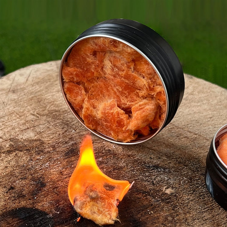 Specjalnie skomponowana z wodoodpornego wosku i błota na bazie minerałów, podpałka osiąga szybki zapłon nawet pod wpływem deszczu, śniegu lub wysokiej wilgotności, zapewniając niezawodne rozpalanie ognia w krytycznych sytuacjach przetrwania.