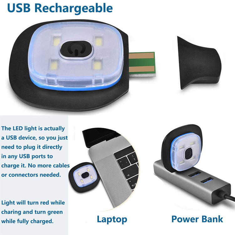 Latarka czołowa LED z możliwością ładowania, bez użycia rąk, Dziana lampka nocna
