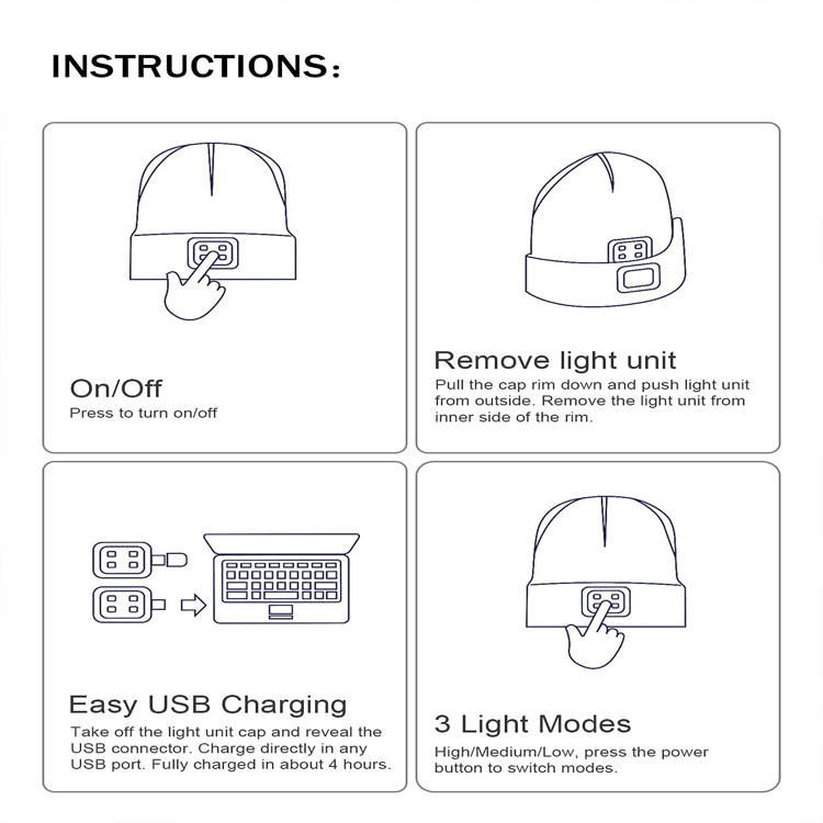 Ta innowacyjna czapka LED łączy w sobie jasną, skupioną latarkę czołową z wygodną czapką, zapewniając oświetlenie całkowicie wolne od rąk podczas nocnych czynności, napraw lub czytania bez potrzeby używania osobnej latarki czołowej.