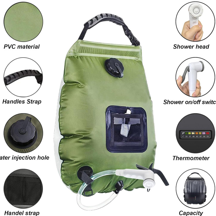 Solarny przenośny prysznic Ogrzewanie kempingowe Torba prysznicowa na kemping