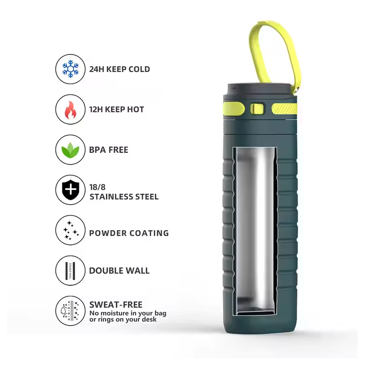 Zaprojektowana z myślą o wygodzie, pokrywa uruchamiana jednym dotknięciem umożliwia szybką obsługę jedną ręką — idealna na pracowite poranki, treningi lub dojazdy do pracy. Po prostu naciśnij, wypij i gotowe.