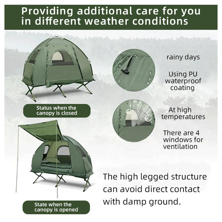 Ultralekki pojedynczy namiot na zewnątrz. Wodoodporny Oxford. Twoje najlepsze schronienie rodzinne na przygody na świeżym powietrzu. Ten ultralekki pojedynczy namiot łączy w sobie wodoodporną tkaninę Oxford z zaawansowaną technologią przeciwdeszczową. Zintegrowane, odporne na wilgoć łóżko składane zapewnia pełen komfort i ochronę podczas wycieczek kempingowych.